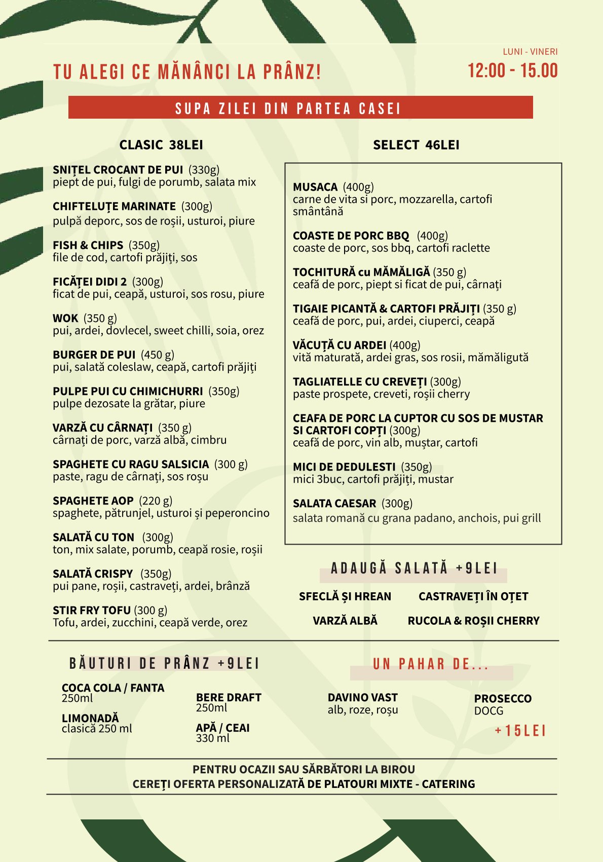 Meniul nostru de prânz à la carte